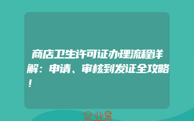 - 商店卫生许可证办理流程详解:申请、审核到发证全攻略!