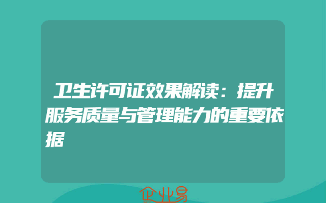 - 卫生许可证效果解读:提升服务质量与管理能力的重要依据