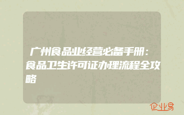 - 广州食品业经营必备手册:食品卫生许可证办理流程全攻略