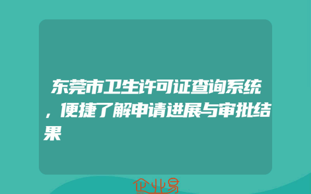 - 东莞市卫生许可证查询系统,便捷了解申请进展与审批结果