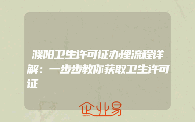 - 濮阳卫生许可证办理流程详解:一步步教你获取卫生许可证