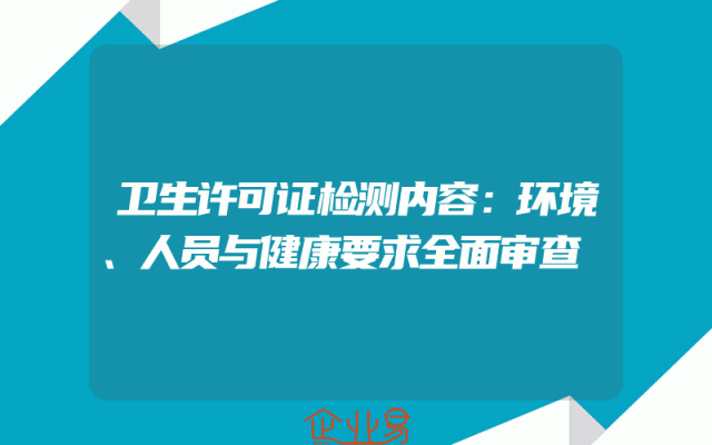 - 卫生许可证检测内容:环境、人员与健康要求全面审查