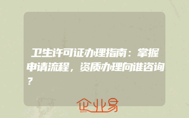 - 卫生许可证办理指南:掌握申请流程,资质办理向谁咨询?