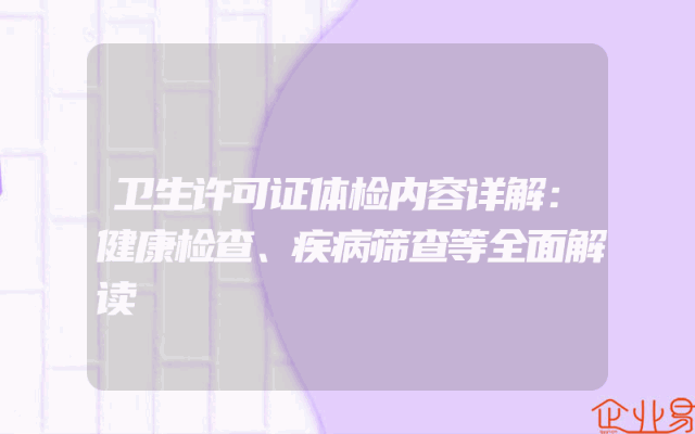 - 卫生许可证体检内容详解:健康检查、疾病筛查等全面解读