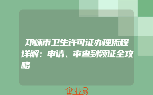 - 邛崃市卫生许可证办理流程详解:申请、审查到领证全攻略