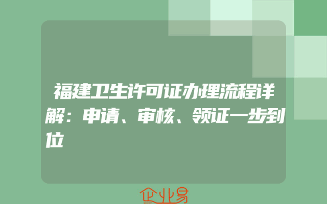 - 福建卫生许可证办理流程详解:申请、审核、领证一步到位