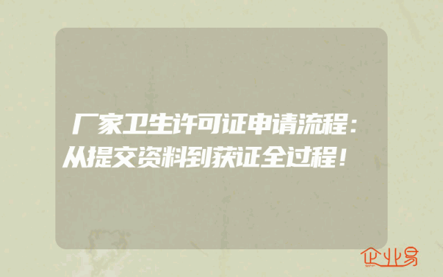 - 厂家卫生许可证申请流程:从提交资料到获证全过程!