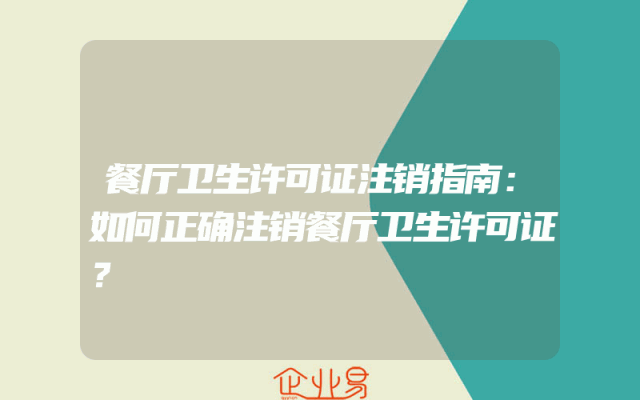 - 餐厅卫生许可证注销指南:如何正确注销餐厅卫生许可证?