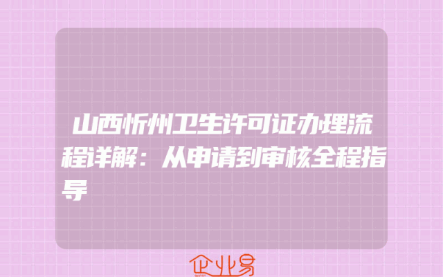- 山西忻州卫生许可证办理流程详解:从申请到审核全程指导