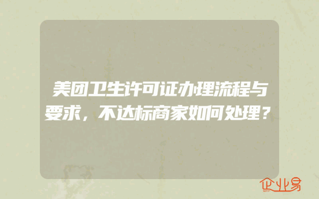 - 美团卫生许可证办理流程与要求,不达标商家如何处理?