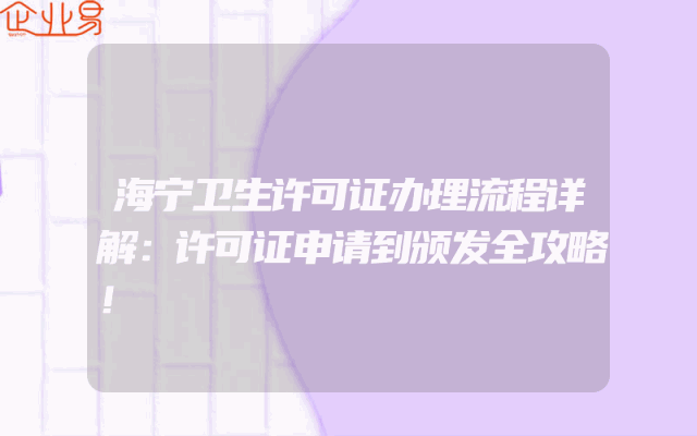 - 海宁卫生许可证办理流程详解:许可证申请到颁发全攻略!