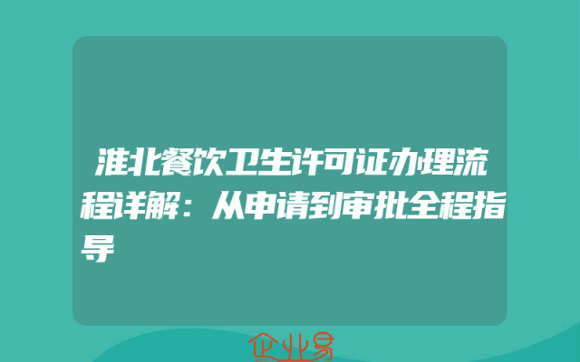 - 淮北餐饮卫生许可证办理流程详解:从申请到审批全程指导