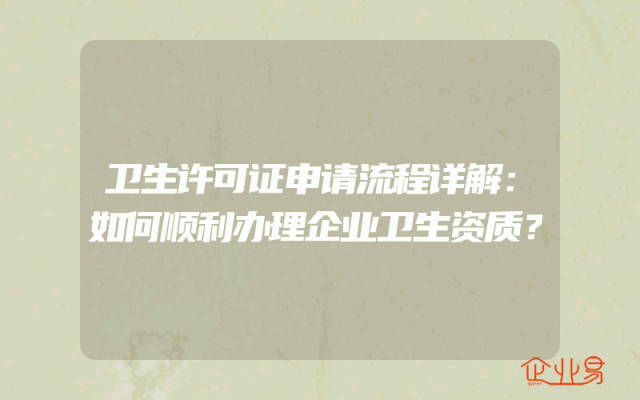 - 卫生许可证申请流程详解:如何顺利办理企业卫生资质?
