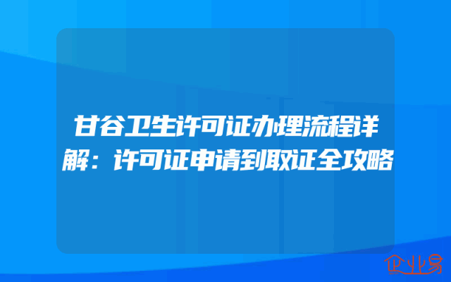 - 甘谷卫生许可证办理流程详解:许可证申请到取证全攻略