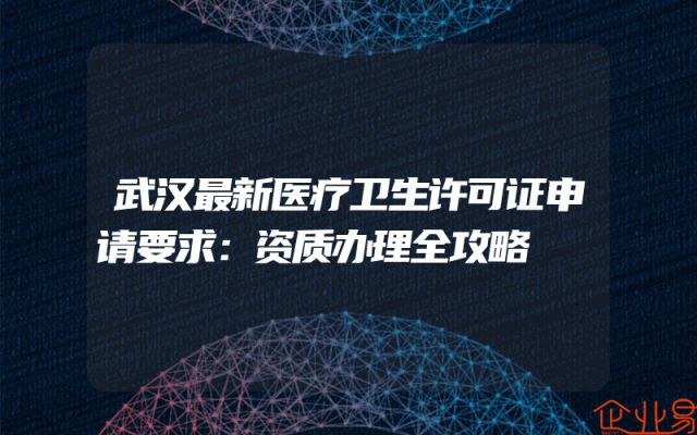 - 武汉最新医疗卫生许可证申请要求:资质办理全攻略