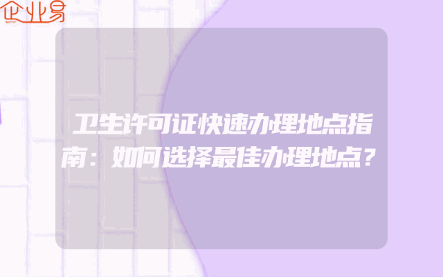 - 卫生许可证快速办理地点指南:如何选择最佳办理地点?