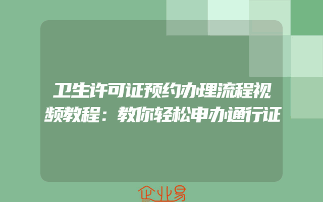 - 卫生许可证预约办理流程视频教程:教你轻松申办通行证