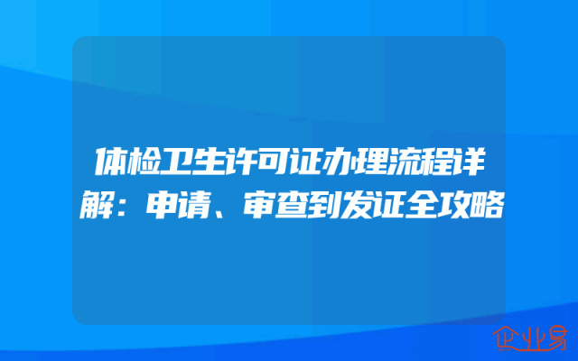 - 体检卫生许可证办理流程详解:申请、审查到发证全攻略