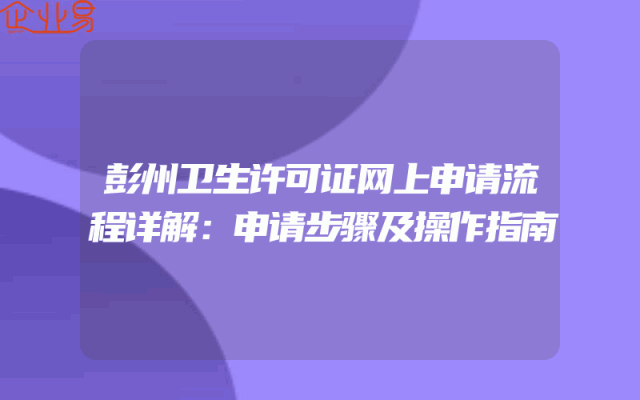 - 彭州卫生许可证网上申请流程详解:申请步骤及操作指南