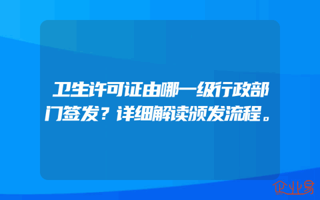 - 卫生许可证由哪一级行政部门签发?详细解读颁发流程。