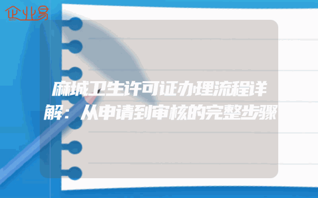 - 麻城卫生许可证办理流程详解:从申请到审核的完整步骤