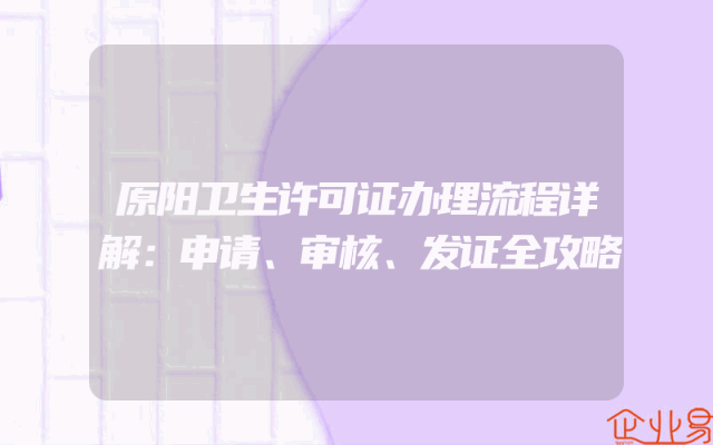- 原阳卫生许可证办理流程详解:申请、审核、发证全攻略