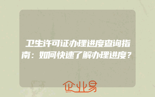- 卫生许可证办理进度查询指南:如何快速了解办理进度?