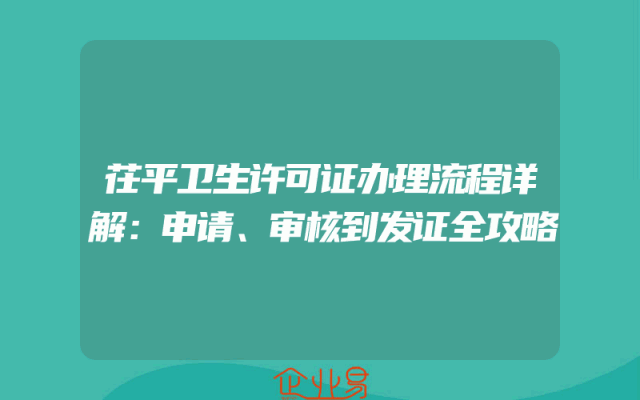 - 茌平卫生许可证办理流程详解:申请、审核到发证全攻略