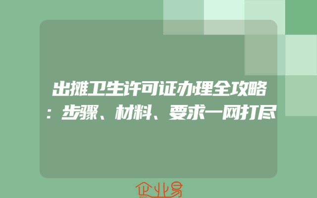 - 出摊卫生许可证办理全攻略:步骤、材料、要求一网打尽