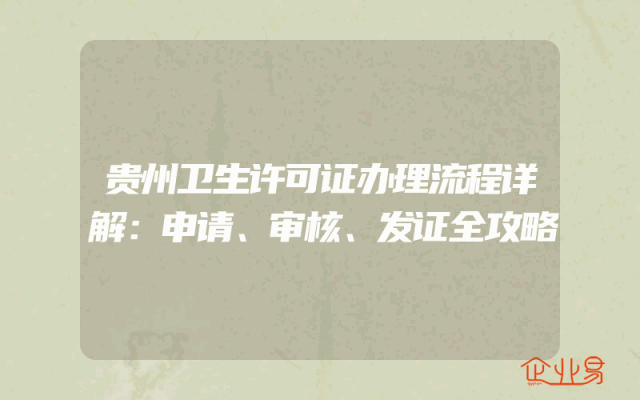 - 贵州卫生许可证办理流程详解:申请、审核、发证全攻略