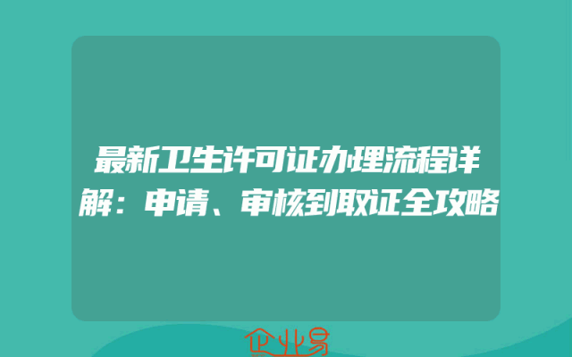 - 最新卫生许可证办理流程详解:申请、审核到取证全攻略