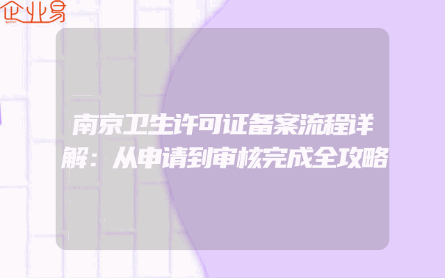 - 南京卫生许可证备案流程详解:从申请到审核完成全攻略
