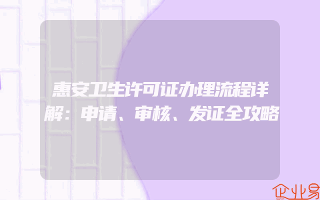 - 惠安卫生许可证办理流程详解:申请、审核、发证全攻略