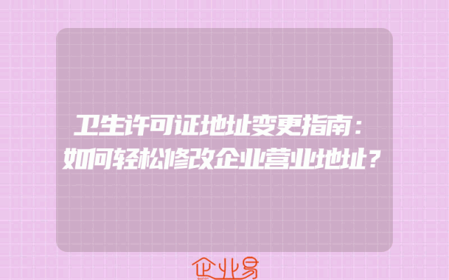 - 卫生许可证地址变更指南:如何轻松修改企业营业地址?