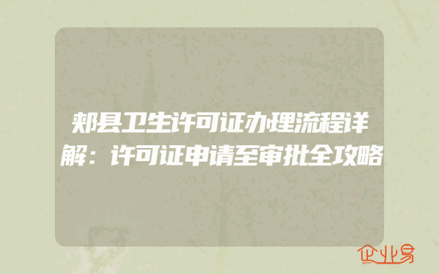 - 郏县卫生许可证办理流程详解:许可证申请至审批全攻略