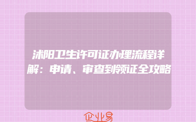 - 沭阳卫生许可证办理流程详解:申请、审查到领证全攻略
