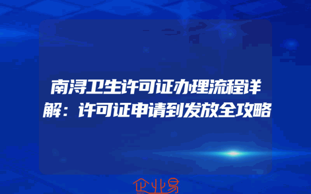 - 南浔卫生许可证办理流程详解:许可证申请到发放全攻略