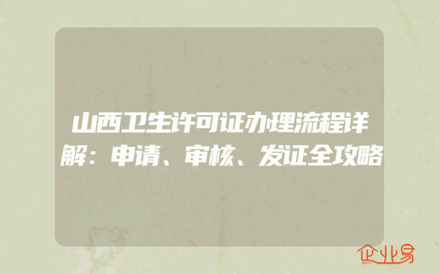 - 山西卫生许可证办理流程详解:申请、审核、发证全攻略