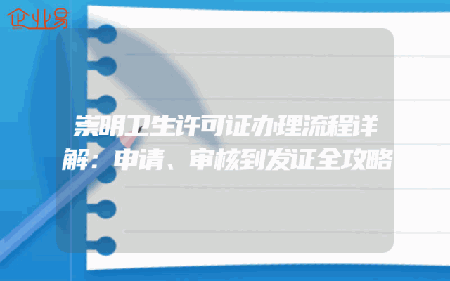 - 崇明卫生许可证办理流程详解:申请、审核到发证全攻略