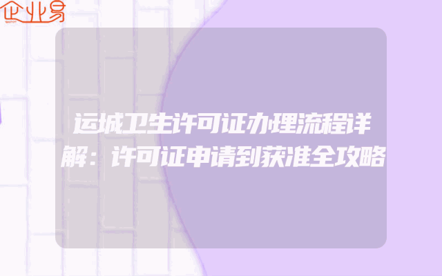 - 运城卫生许可证办理流程详解:许可证申请到获准全攻略
