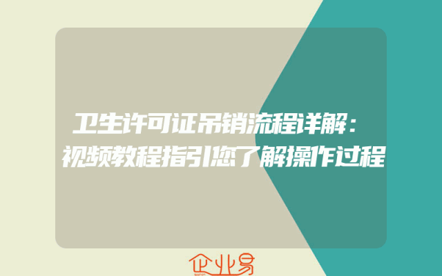 - 卫生许可证吊销流程详解:视频教程指引您了解操作过程