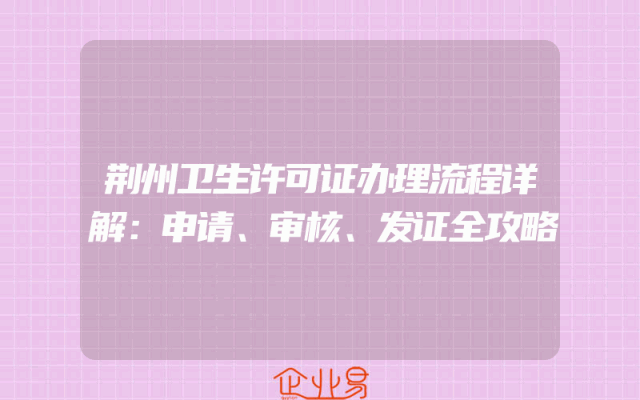 - 荆州卫生许可证办理流程详解:申请、审核、发证全攻略