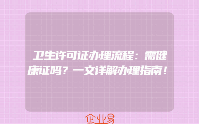 - 卫生许可证办理流程:需健康证吗?一文详解办理指南!