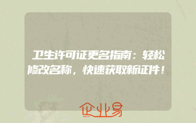 - 卫生许可证更名指南:轻松修改名称,快速获取新证件!