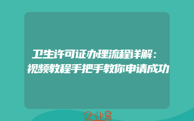 - 卫生许可证办理流程详解:视频教程手把手教你申请成功
