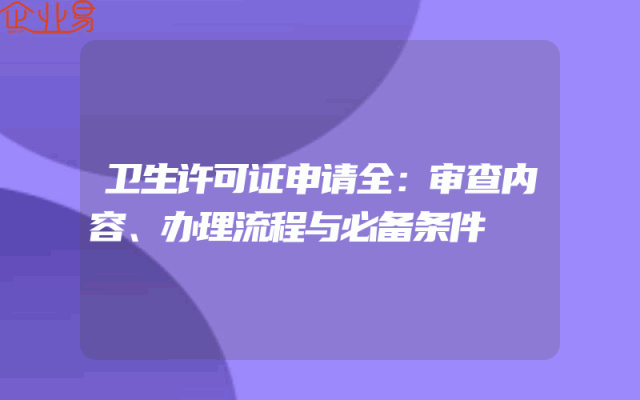 - 卫生许可证申请全:审查内容、办理流程与必备条件