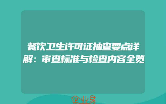 - 餐饮卫生许可证抽查要点详解:审查标准与检查内容全览