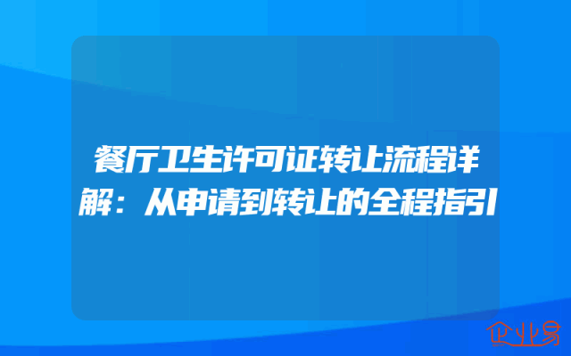 - 餐厅卫生许可证转让流程详解:从申请到转让的全程指引