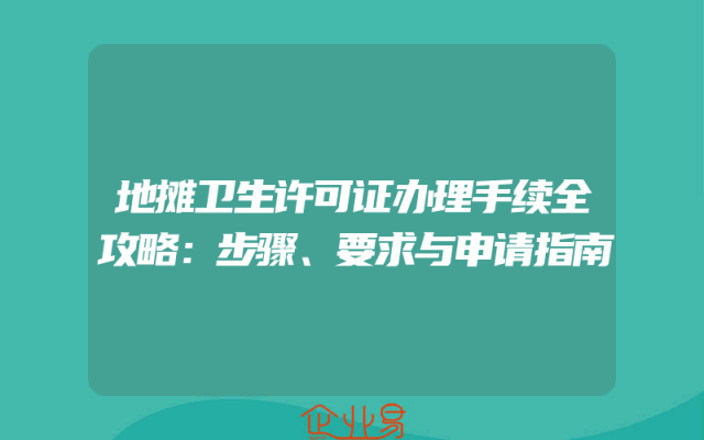 - 地摊卫生许可证办理手续全攻略:步骤、要求与申请指南
