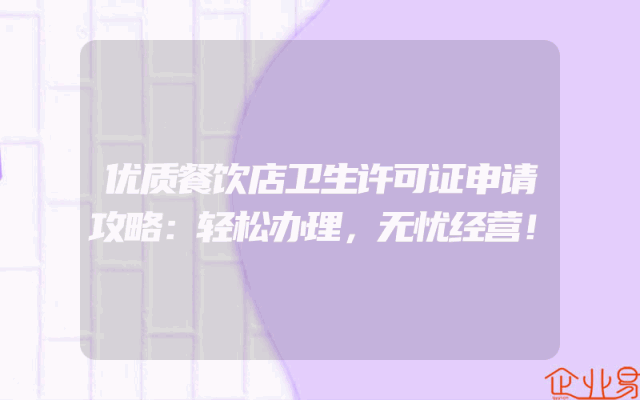- 优质餐饮店卫生许可证申请攻略:轻松办理,无忧经营!